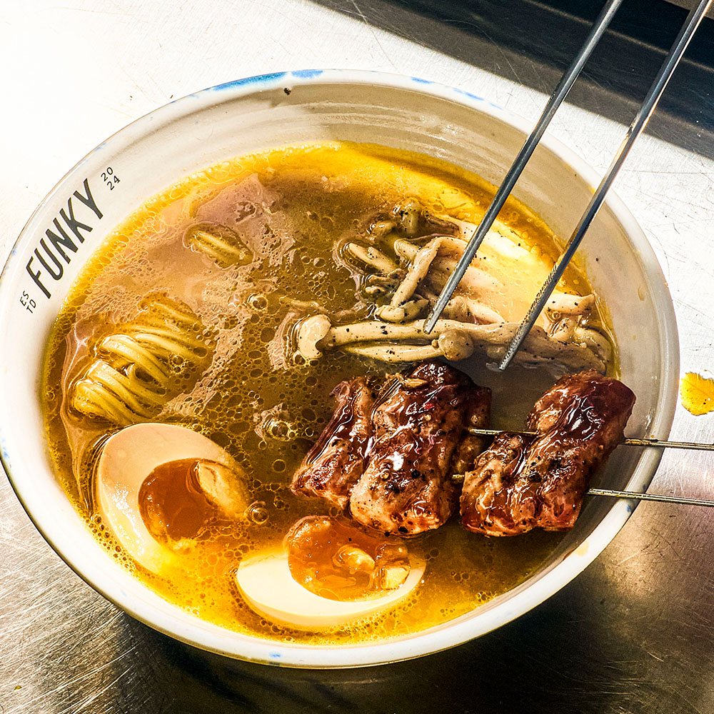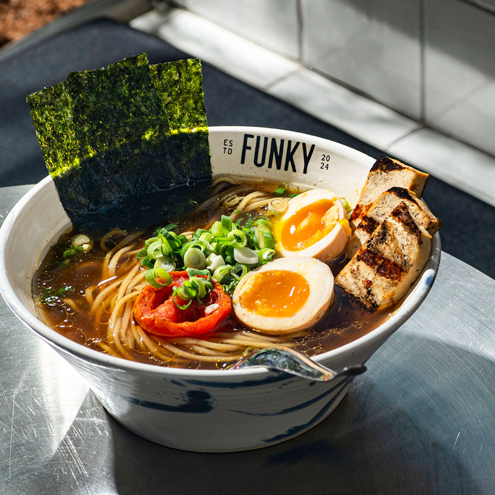 ברוכים הבאים ל־FUNKY, איזאקאיה יפנית צעירה ודינאמית שנולדה מהאהבה לאוכל טוב, לאנרגיה עירונית ולעיצוב עכשווי. המטבח שלנו שואב השראה מהשווקים הסואנים של יפן — עם ראמן עשיר שמתבשל באהבה, גיוזות בעבודת יד, שיפודי יאקיטורי על גריל ונודלס מוקפצים בדיוק נכון. החלל מעוצב באלמנטים של מתכת, שיש ונירוסטה, בשילוב גופי תאורה ייחודיים שמייצרים אווירה אינטימית וצעירה. זה המקום להירגע אחרי העבודה, לפתוח שולחן עם חברים או ליהנות מדרינק וקערת ראמן שמחממת את הלב. ב־FUNKY — הכול קורה בקצב הנכון, עם חיוך ועם הרבה טעם טוב